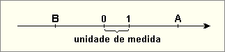 Para determinar, por exemplo, a posição ou coordenadas dos pontos A e B (Figura 1) sobre uma reta orientada, devemos inicialmente fixar dois pontos (Figura 2). O primeiro ponto será denominado origem. O segundo ponto determina, com a origem, uma distância que será considerada a unidade de medida. Na reta real esses pontos são, respectivamente, o número 0 (zero) e o número 1(um).