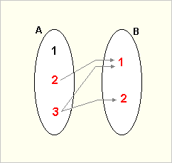 Exemplo: Sejam os conjuntos A = { 1, 2, 3 } ; B = { 1,2 } e a relação R = { (x,y) Î AXB; y < x }.