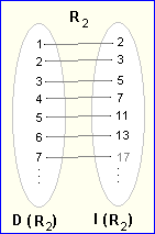 b)       R2 = { (x,y) Î N X N; y = 2x - 1 }